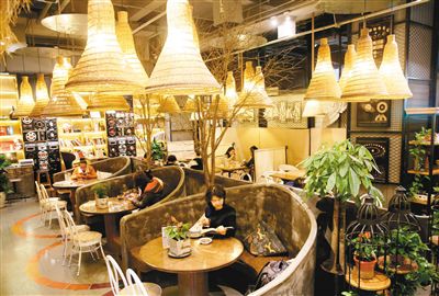 消費(fèi)者在高新區(qū)一家咖啡館讀書、聊天